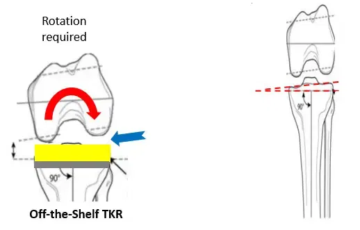 La rotación del implante se decide mediante puntos de referencia intraoperatorios, así como puntos de referencia que van más allá del campo quirúrgico (como la cabeza del fémur). El cirujano no puede observar los puntos de referencia que no son visibles. Por lo tanto, el cirujano hace aproximaciones y a veces puede llegar a compromisos sobre cuánto rotar y cómo alinear la rodilla artificial.