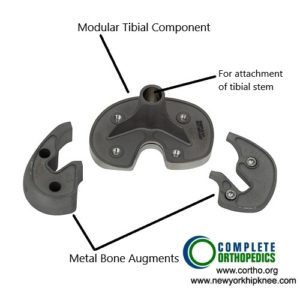 Revision knee replacement may require the use of special implants with attachments for stem and bone augments. The modularity of these implants helps the surgeon to achieve far greater stability than traditional implants.